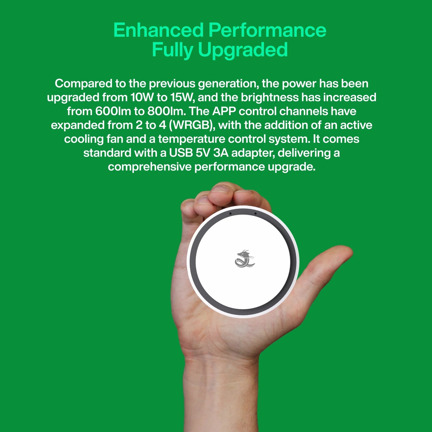 At 90 mm diameter and only 25 mm thick, it disappears above pico tanks, terrariums and jars while providing honest punch for mosses, buce, anubias and small stems. Perfect for displays up to roughly 10–20 cm in length or height, mood lighting on a bookshelf scape, or a highlight over Wabi-Kusa bowls.